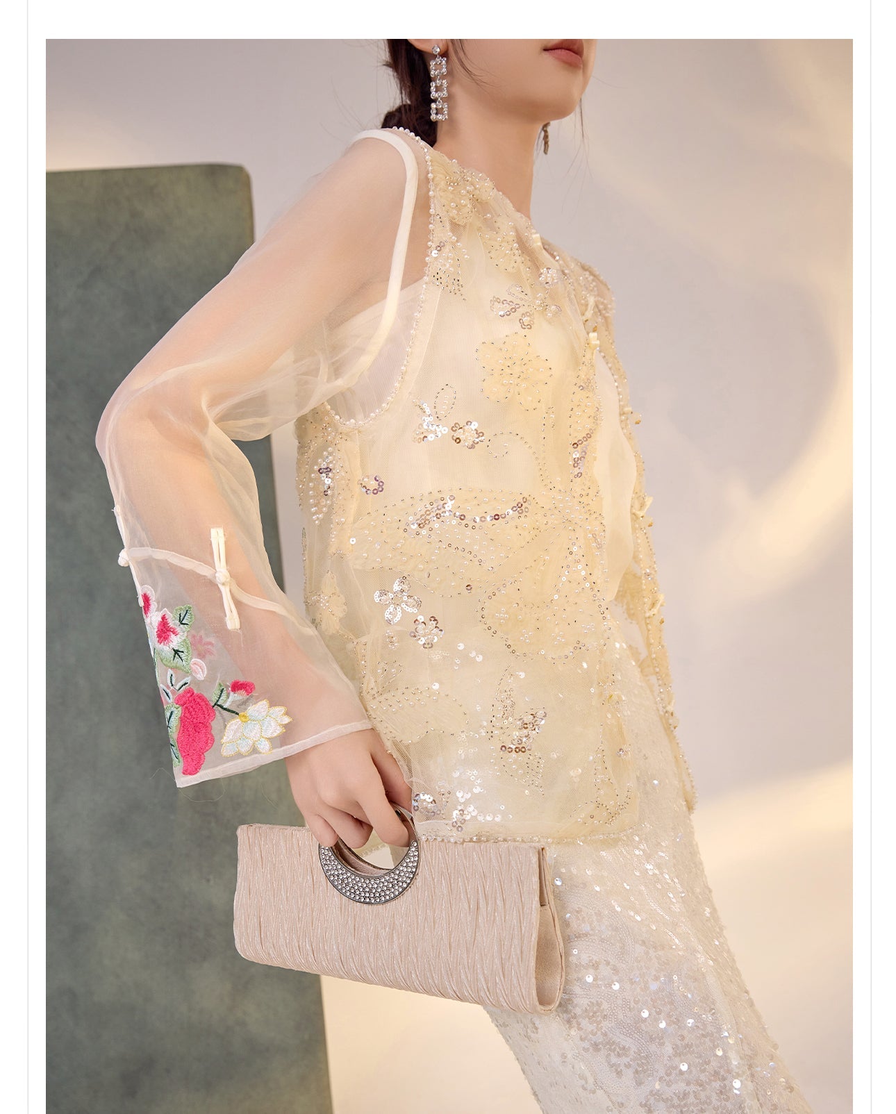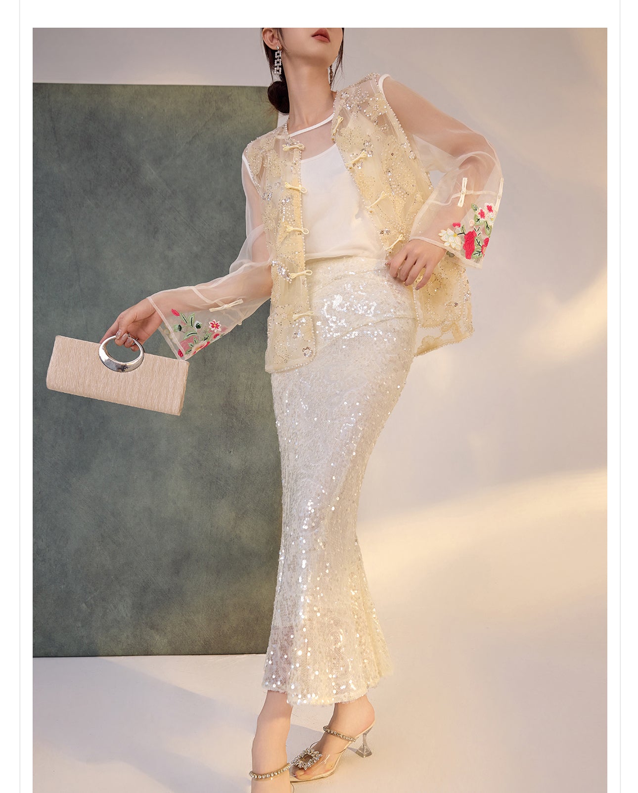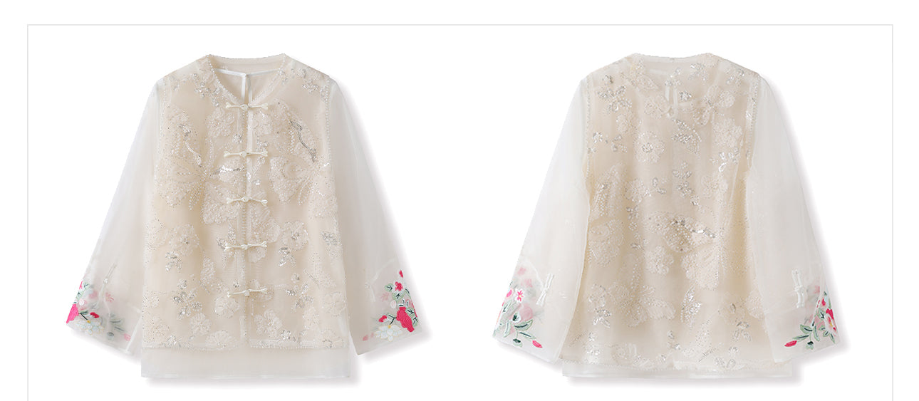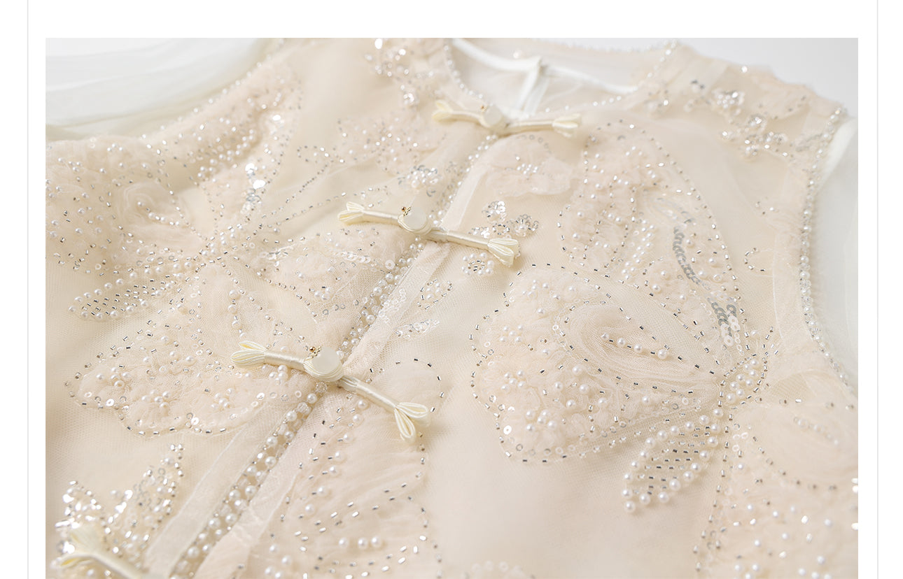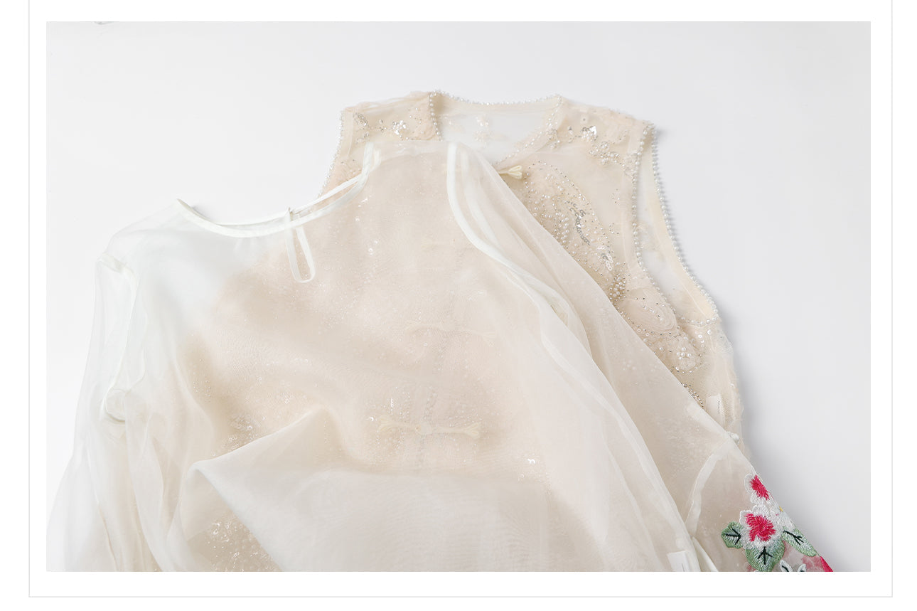 Silk Sutton Dazzling Embroidery Qipao Cheongsam Two Piece
