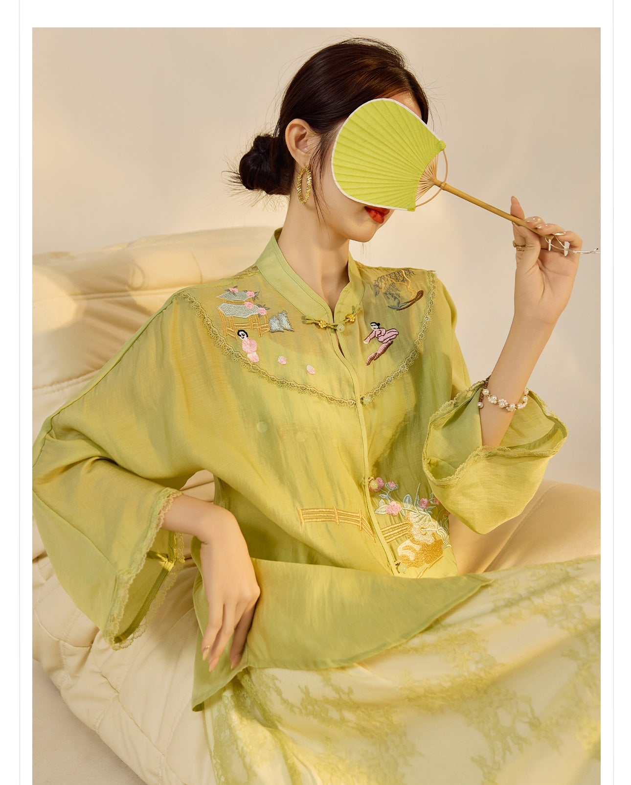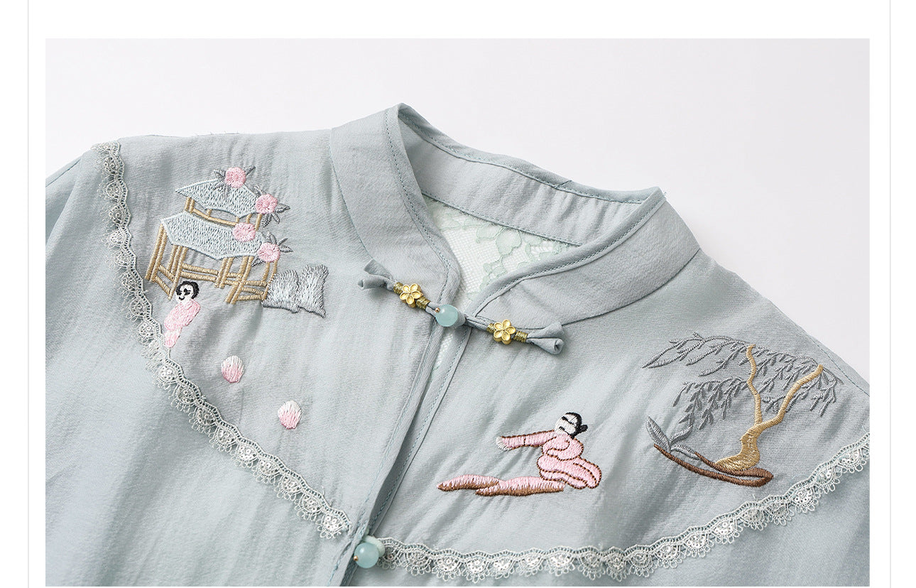 Irma Velvet Glow Embroidery Qipao Cheongsam Two Piece