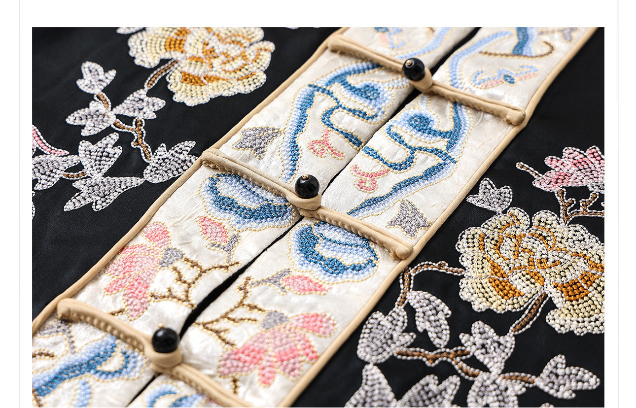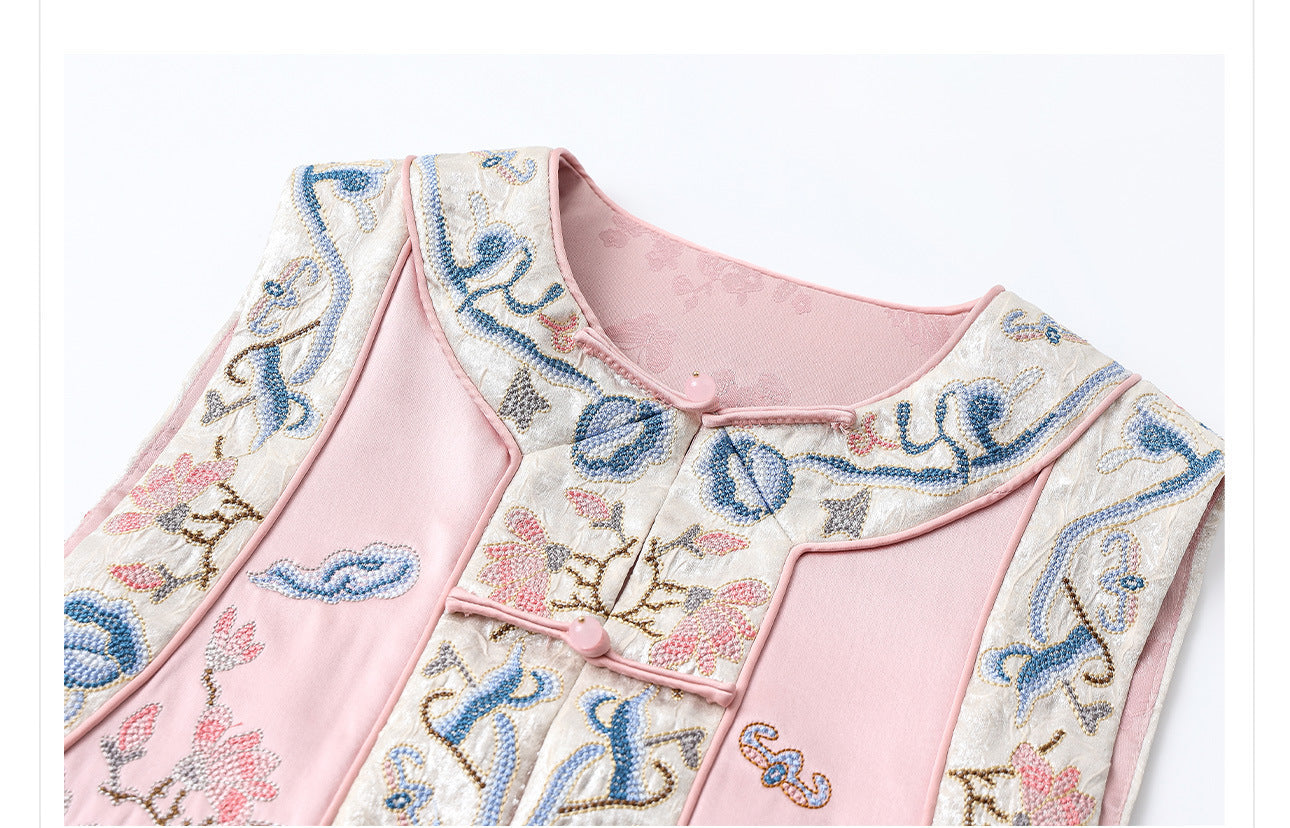 Olga Pearl Whisper Embroidery Qipao Cheongsam Vest Coat