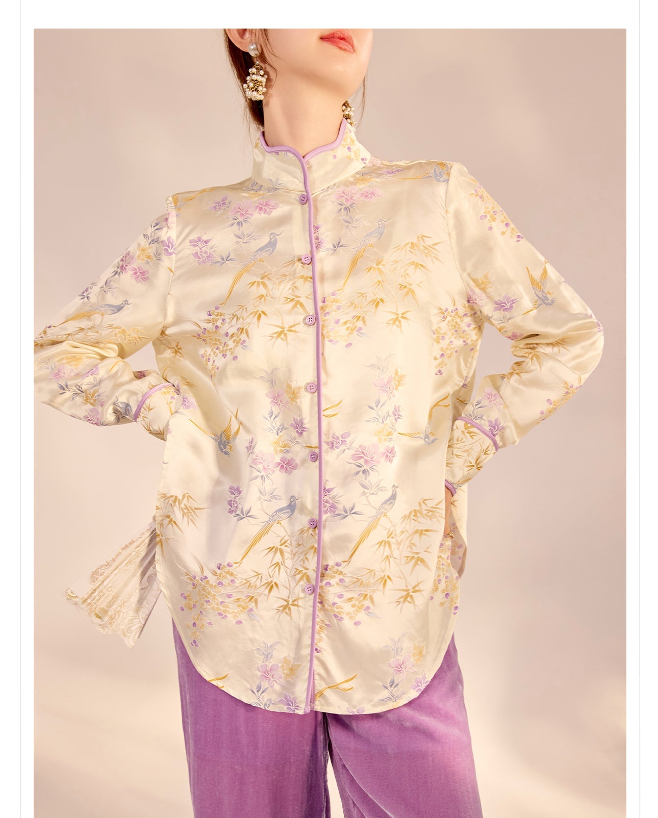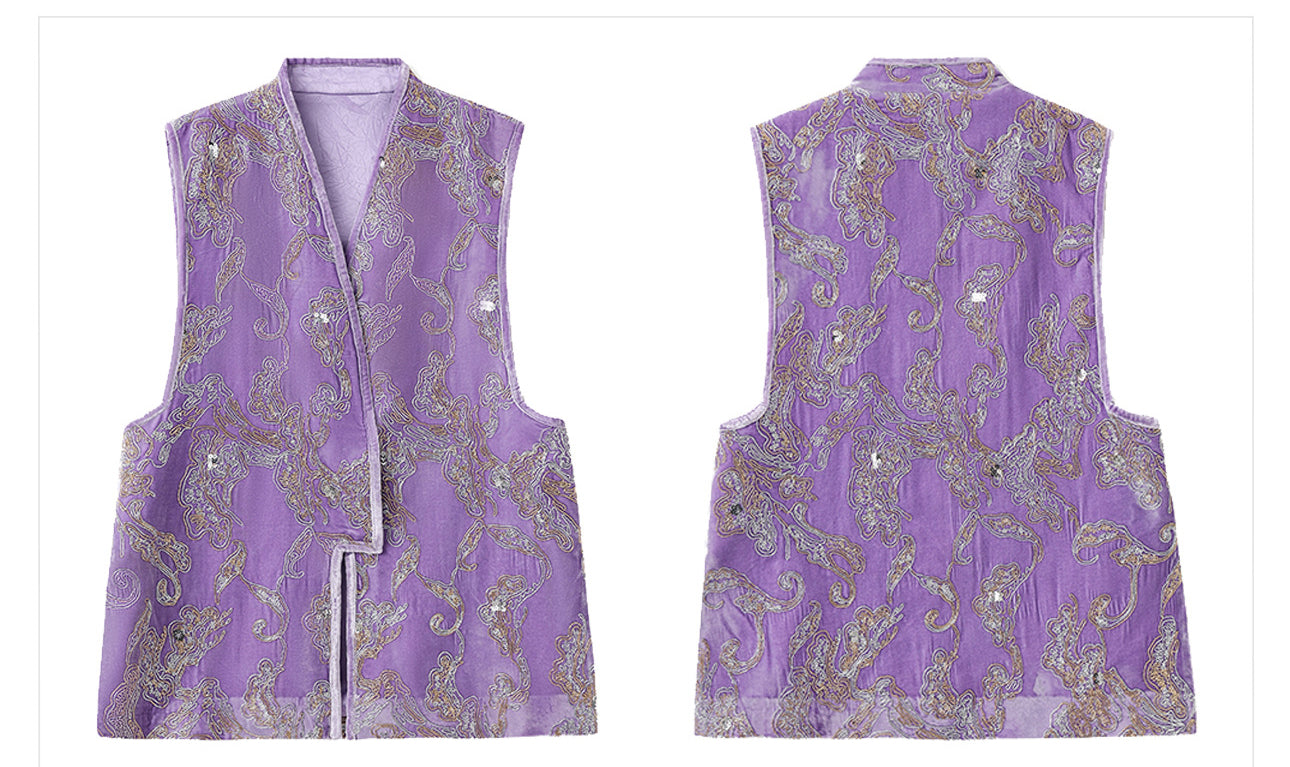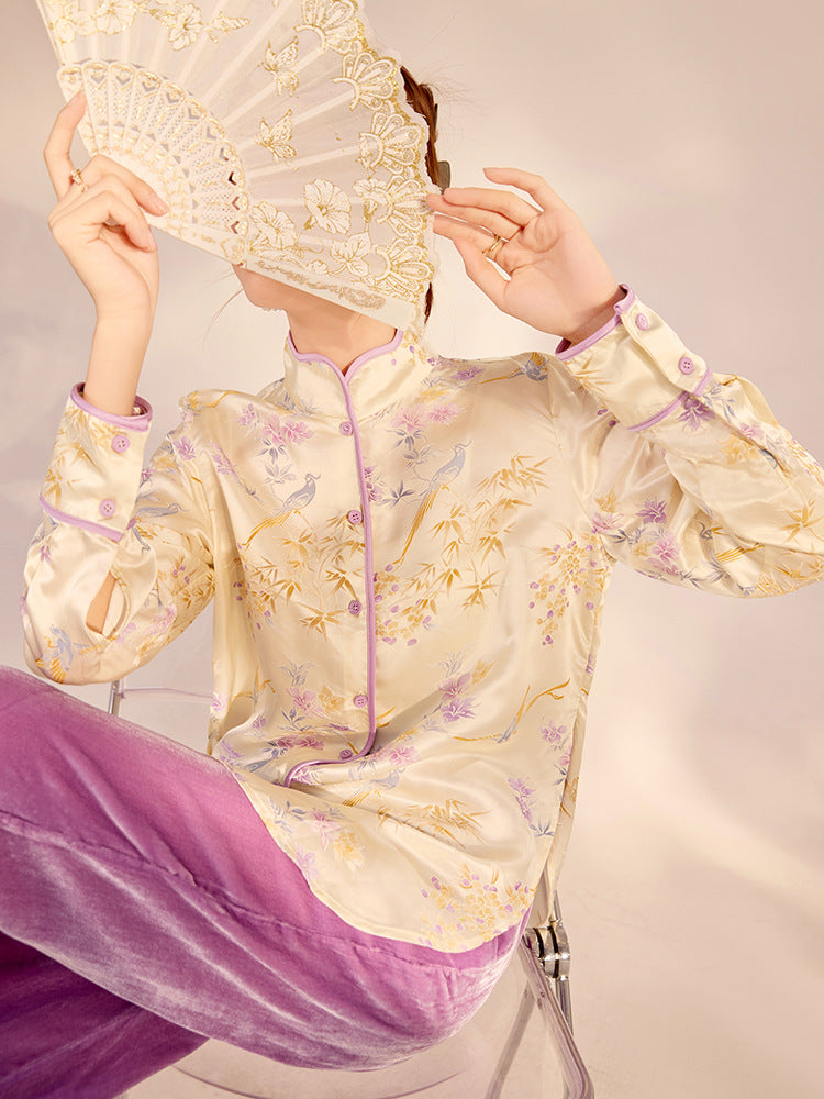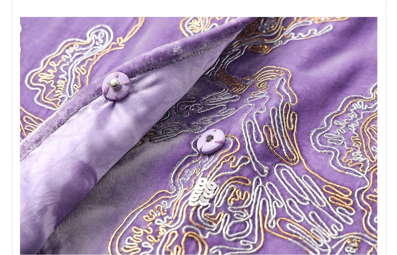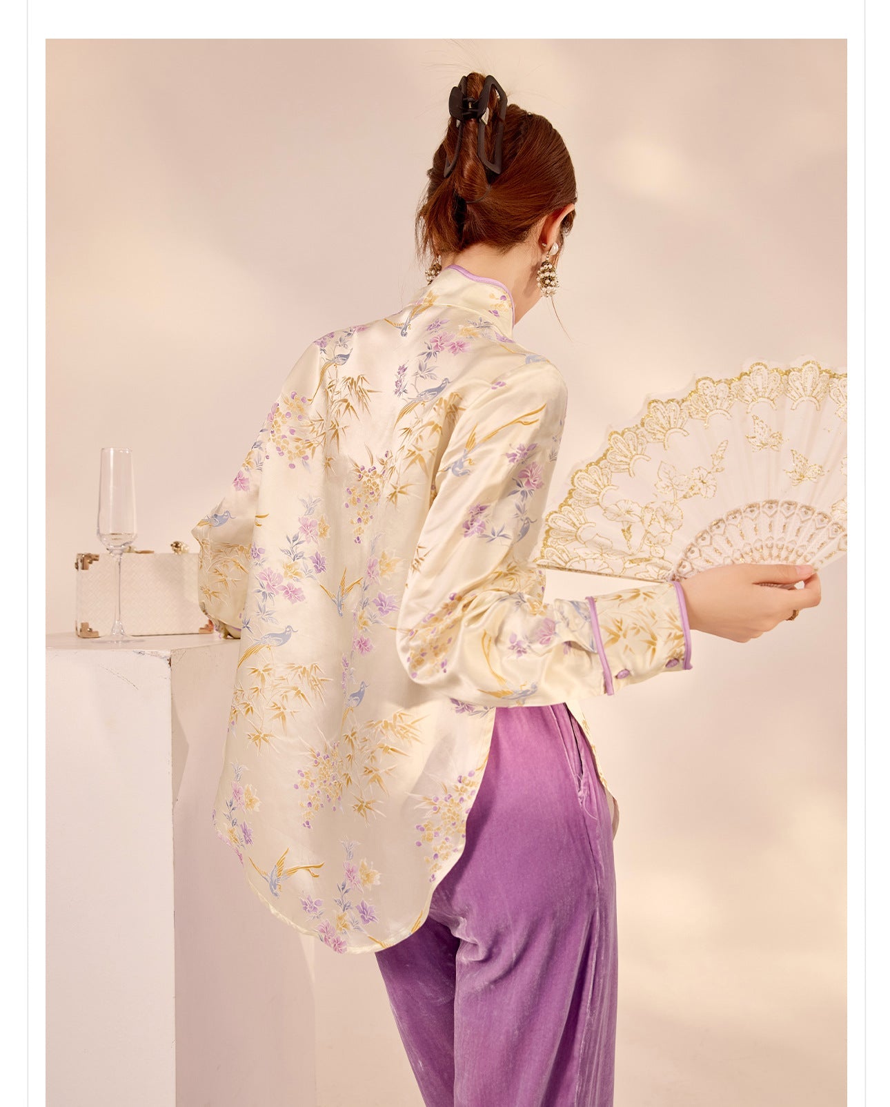 Silk Iris Moonlit Touch Embroidery Qipao Cheongsam Three Piece
