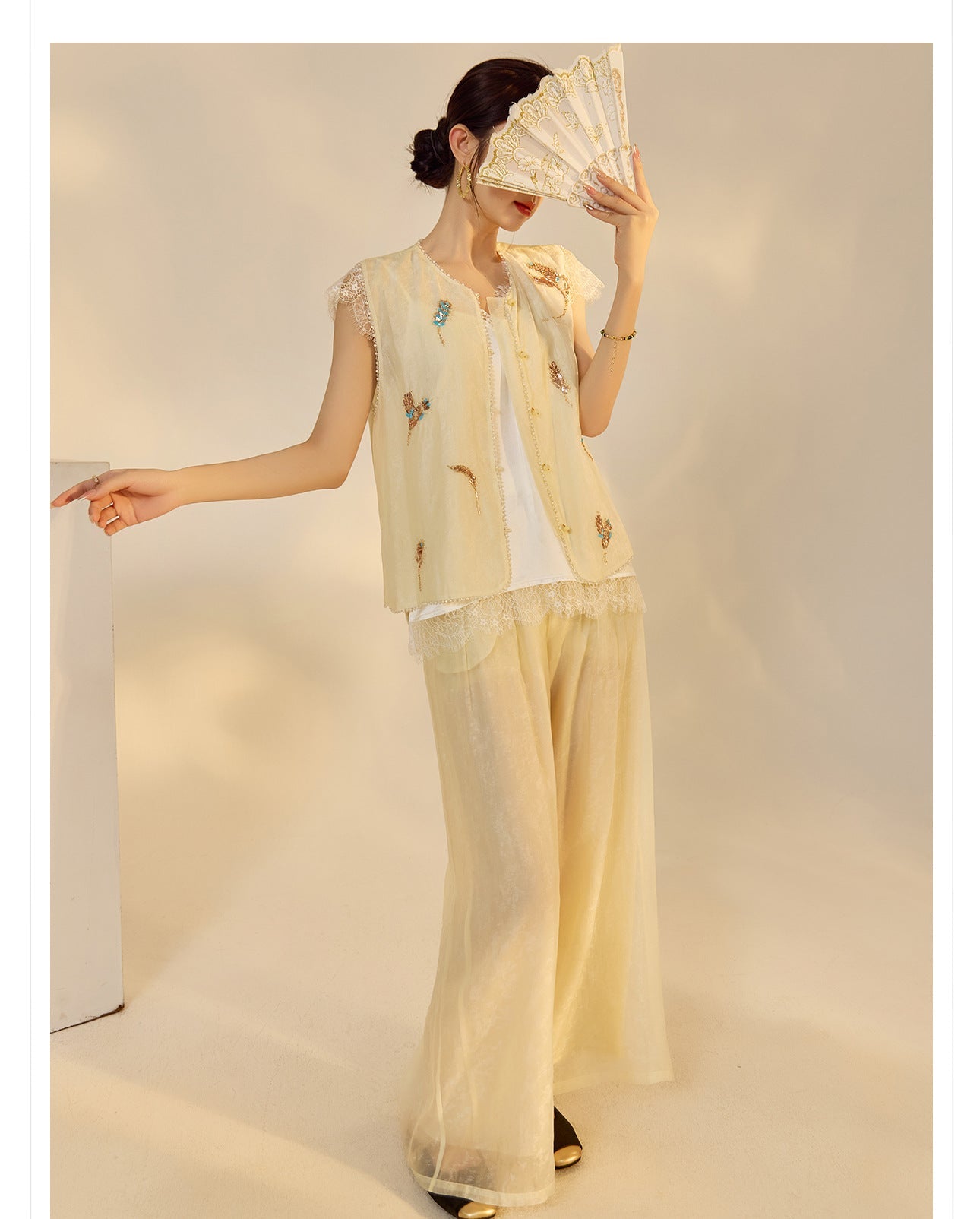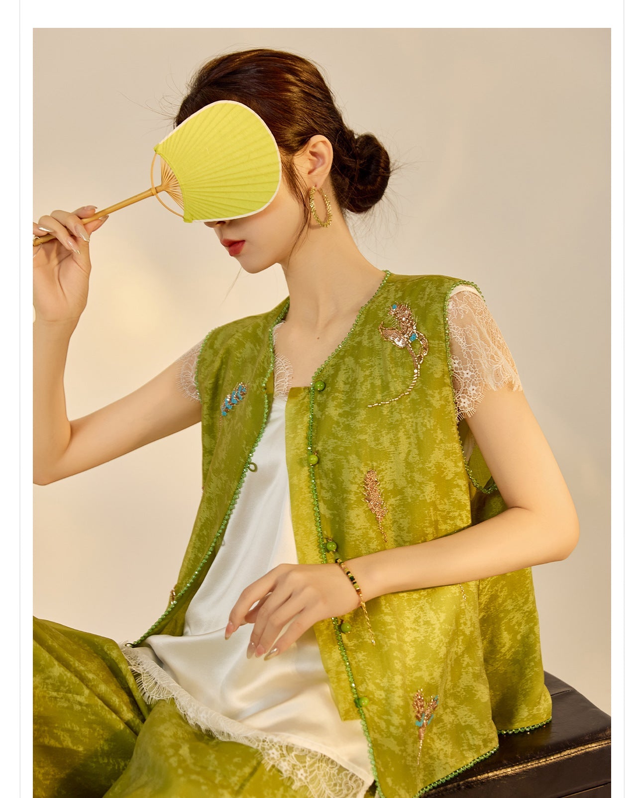 Celosia Good-Looking Embroidery Qipao Cheongsam Two Piece