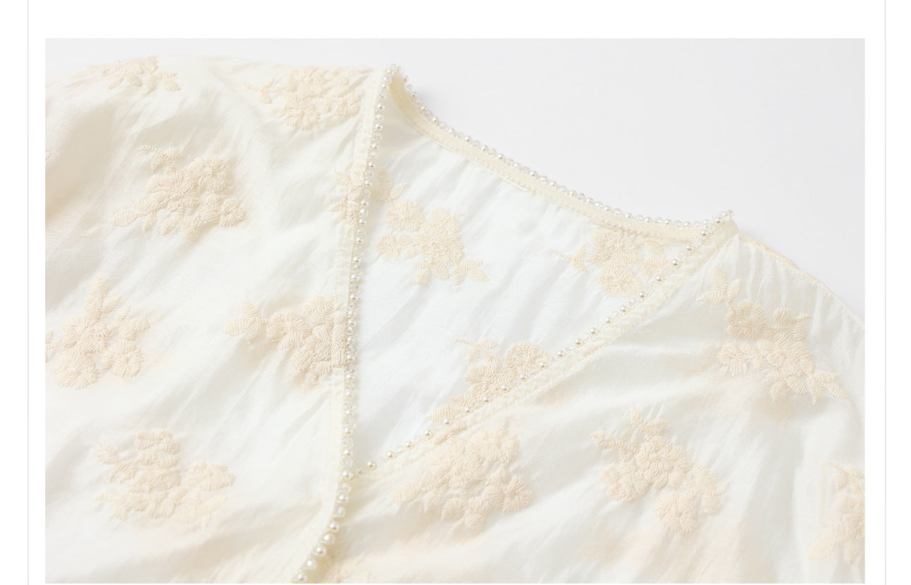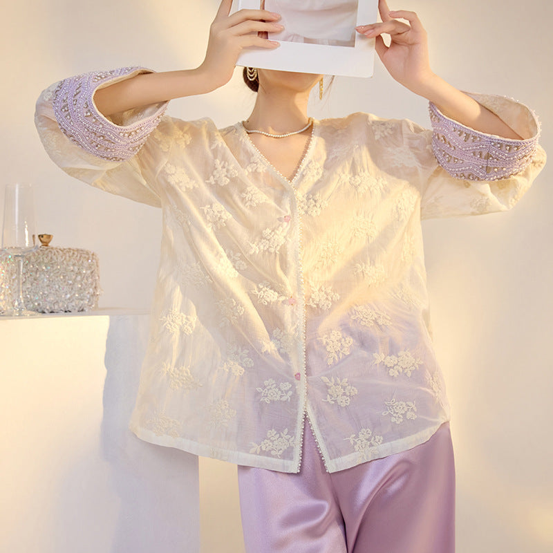 Aldebaran Tailored Embroidered Acetate Cheongsam Trousers Top Set Qipao