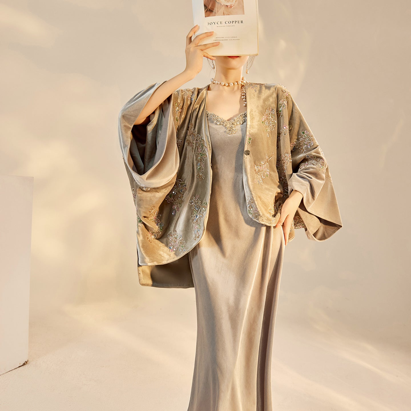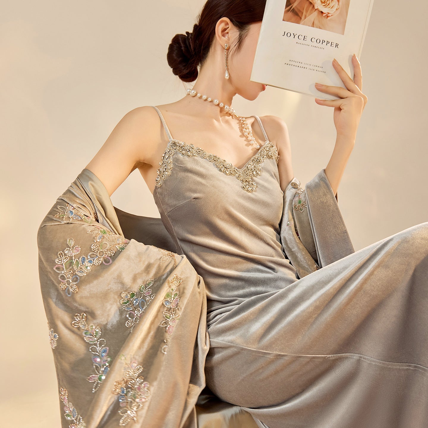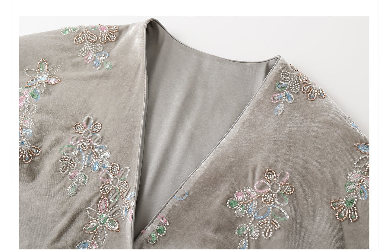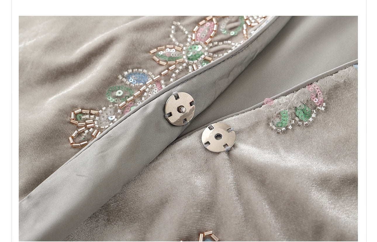Elevate your wardrobe with this exquisite Cheongsam and Qipao-inspired two-piece set. The luxurious embroidered cardigan features intricate beaded details, paired with a sexy suspender skirt that beautifully highlights your silhouette. Perfect for special occasions like weddings or evening parties, this modern ensemble combines traditional elegance with contemporary flair, making it a versatile addition to your collection.