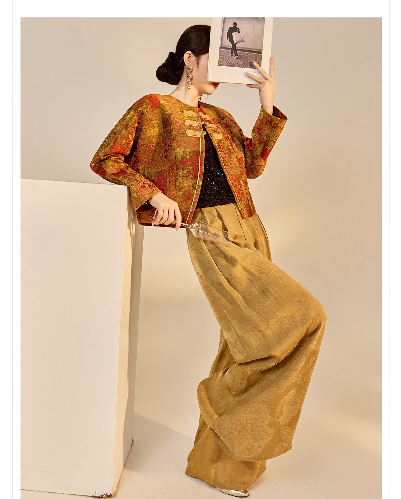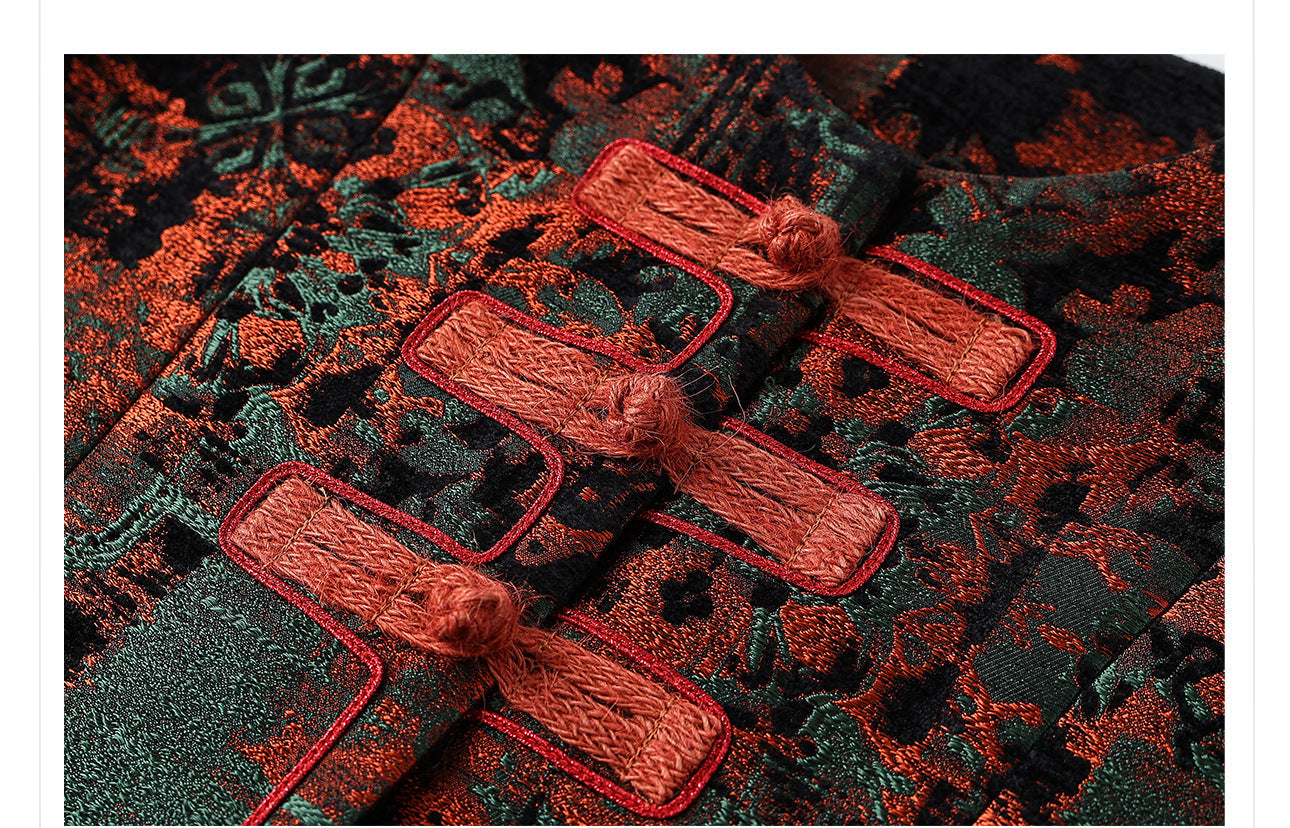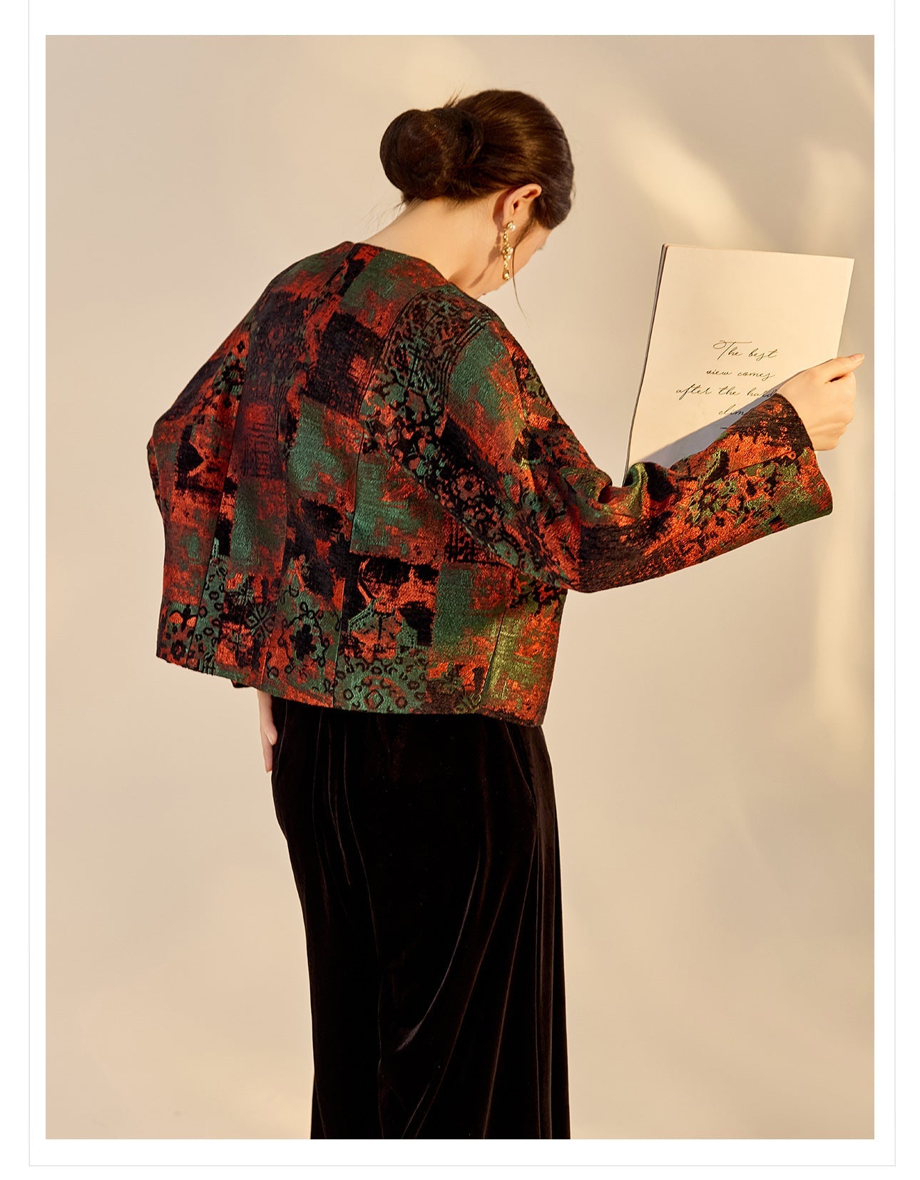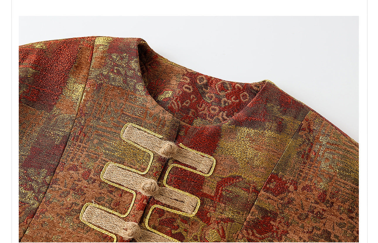 Embrace elegance with this unique jacquard jacket featuring stylish frog buttons. This modern Cheongsam-inspired Qipao jacket is perfect for early autumn, offering a sophisticated silhouette that complements various occasions. The slim-fit design enhances your figure while providing comfort, making it ideal for casual outings or festive celebrations.