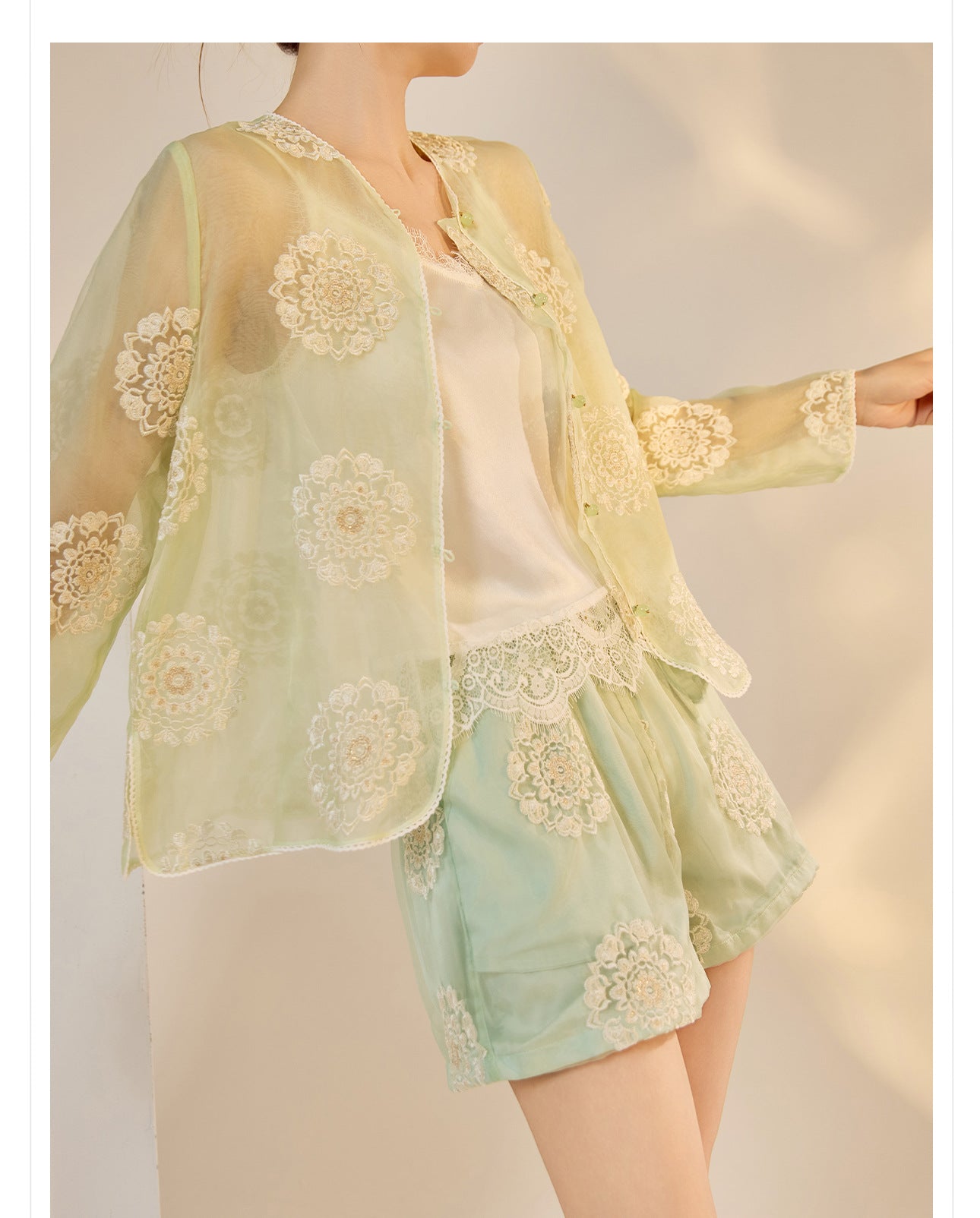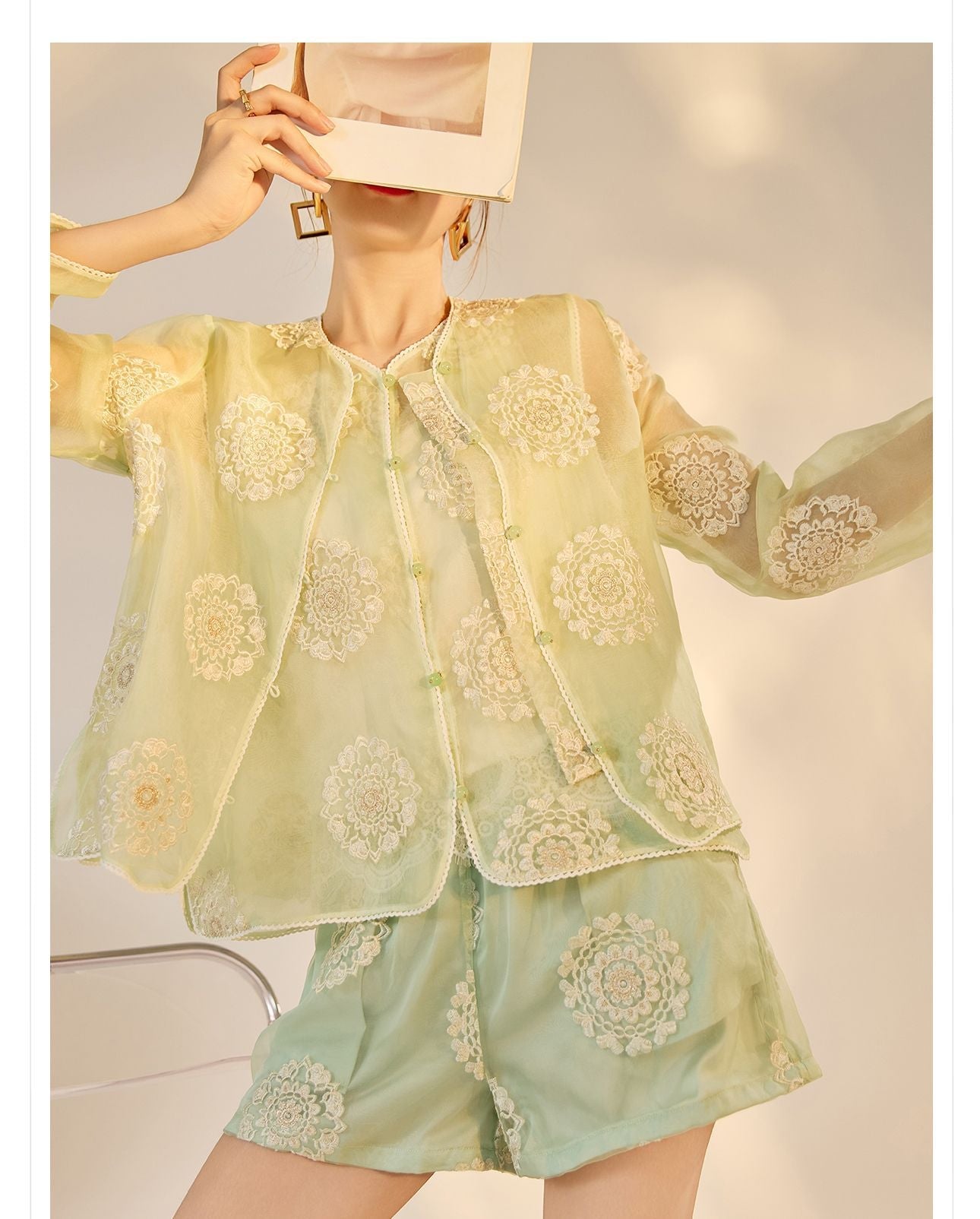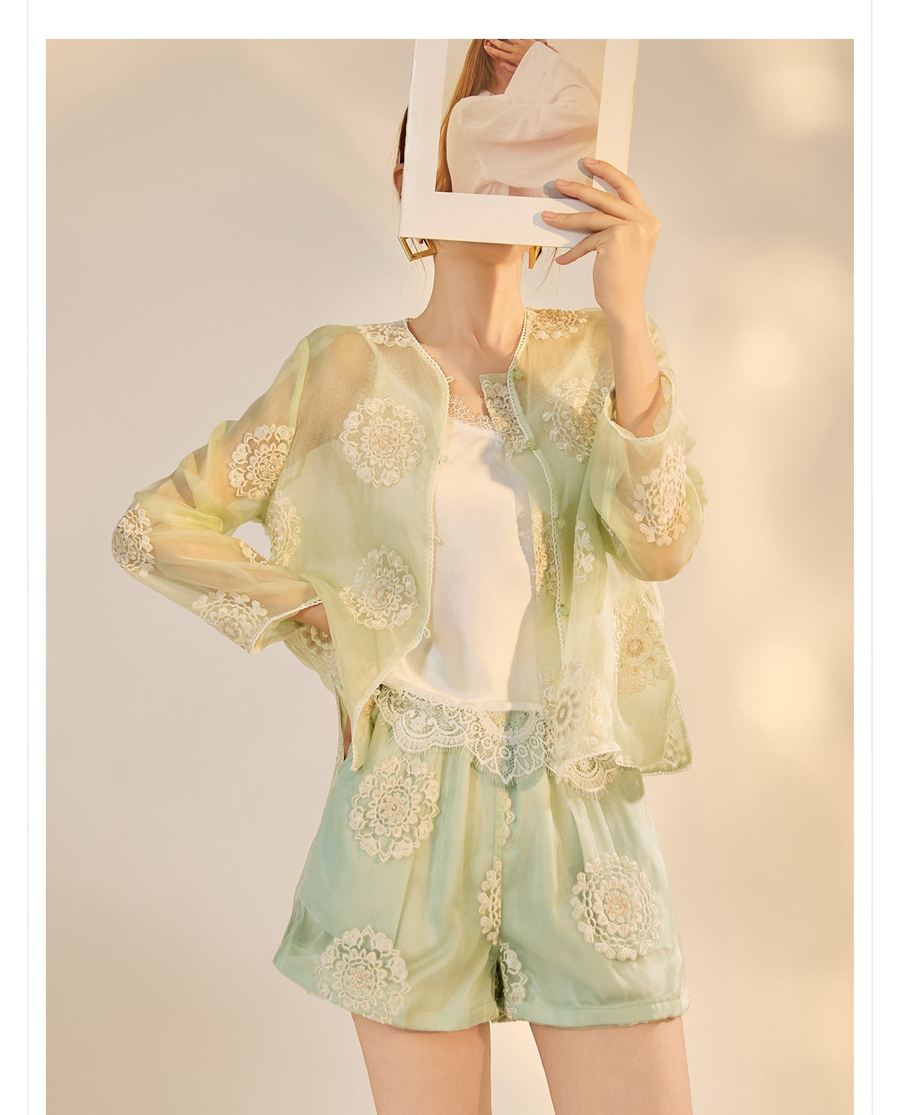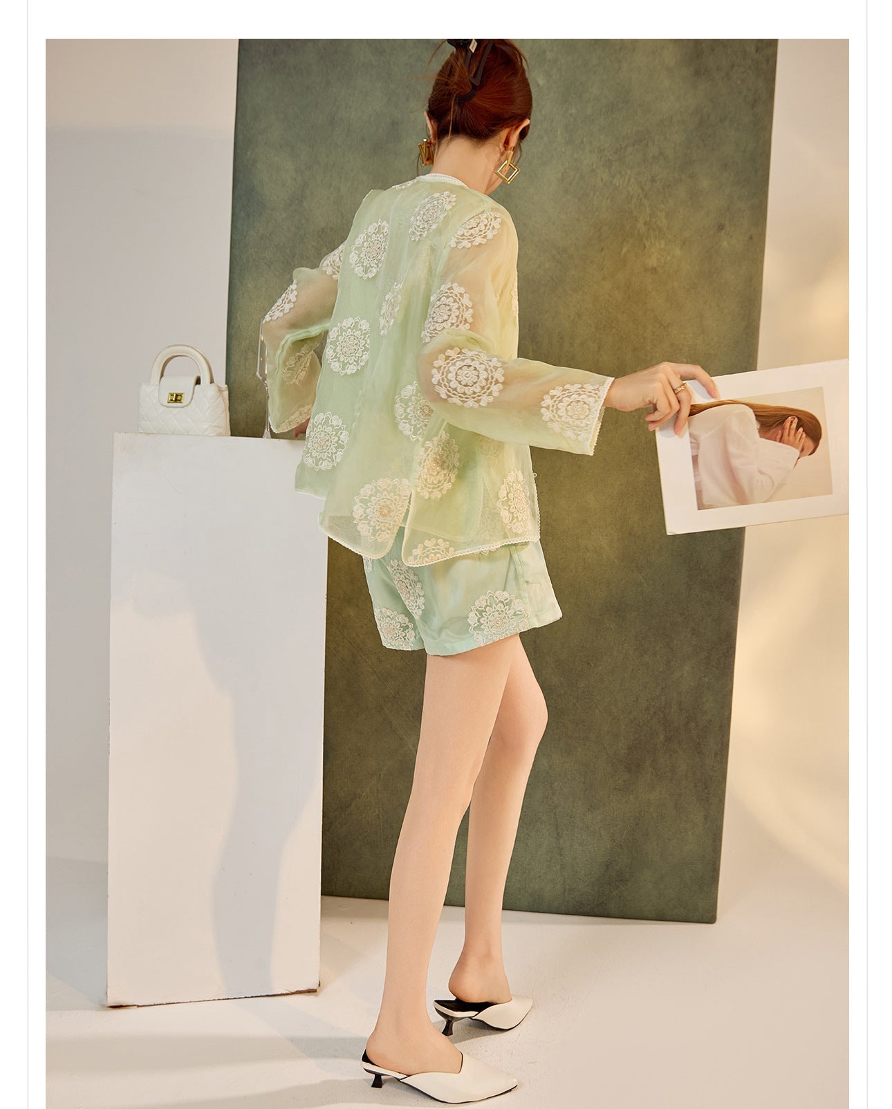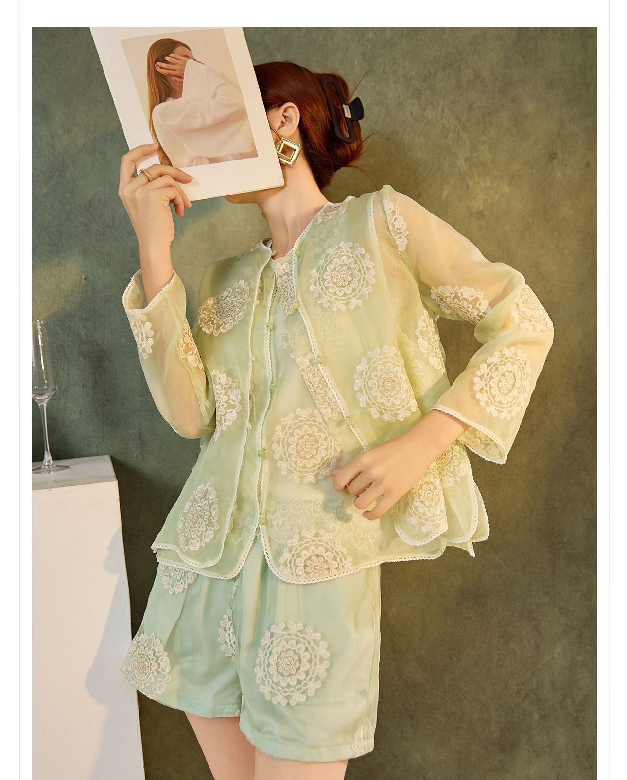 Silk Chrysanthemum Glamorous Embroidery Qipao Cheongsam Three Piece