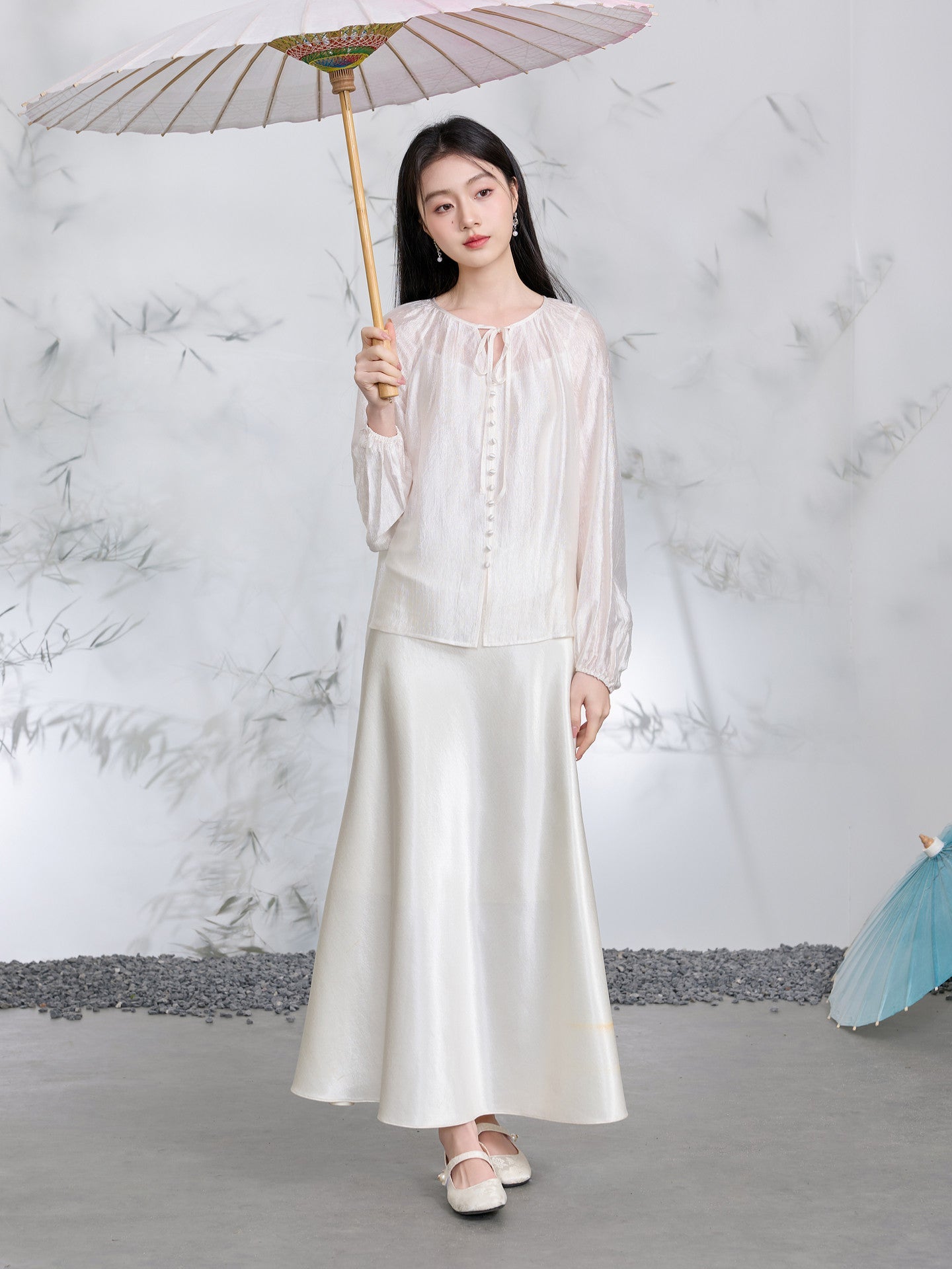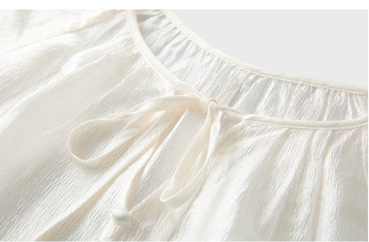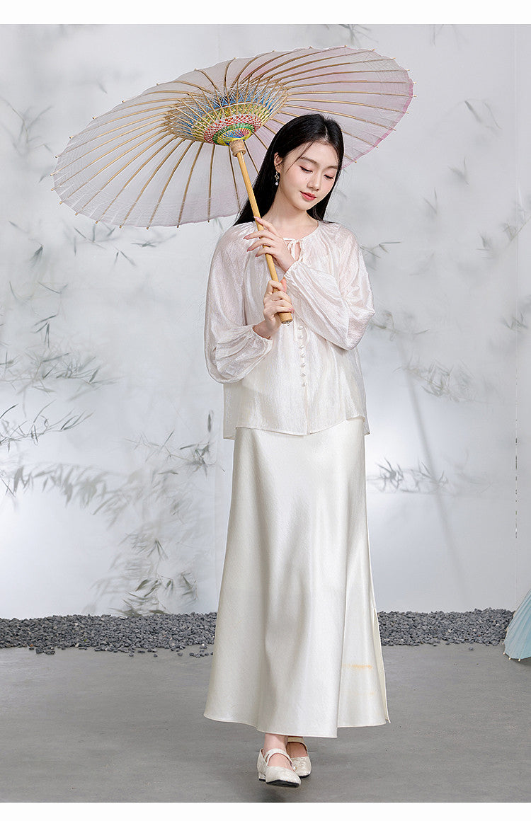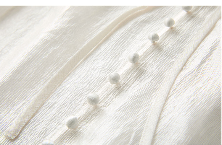 This modern Cheongsam top in a soft beige hue is perfect for casual outings or special occasions. Its loose fit and stylish tie design offer comfort while maintaining a chic silhouette. The traditional elements blend seamlessly with contemporary style, making it a versatile addition to your wardrobe. Ideal for pairing with skirts or trousers, this Qipao-inspired piece is a must-have for those who appreciate cultural heritage and modern fashion.