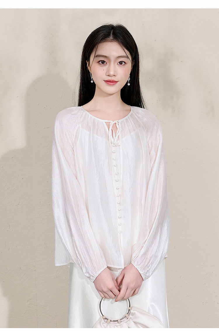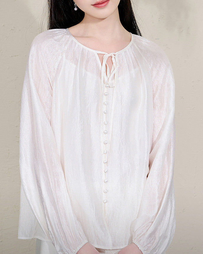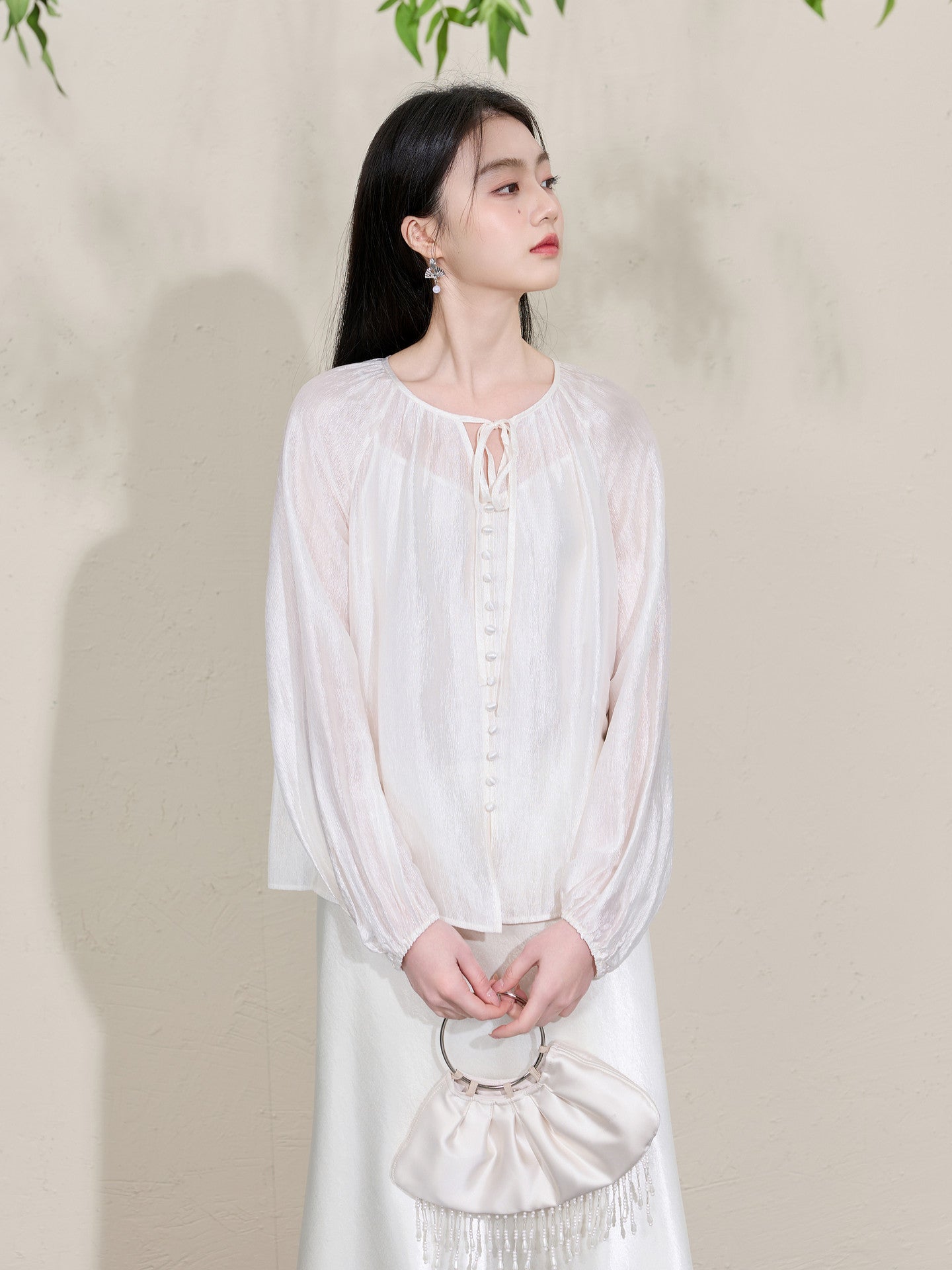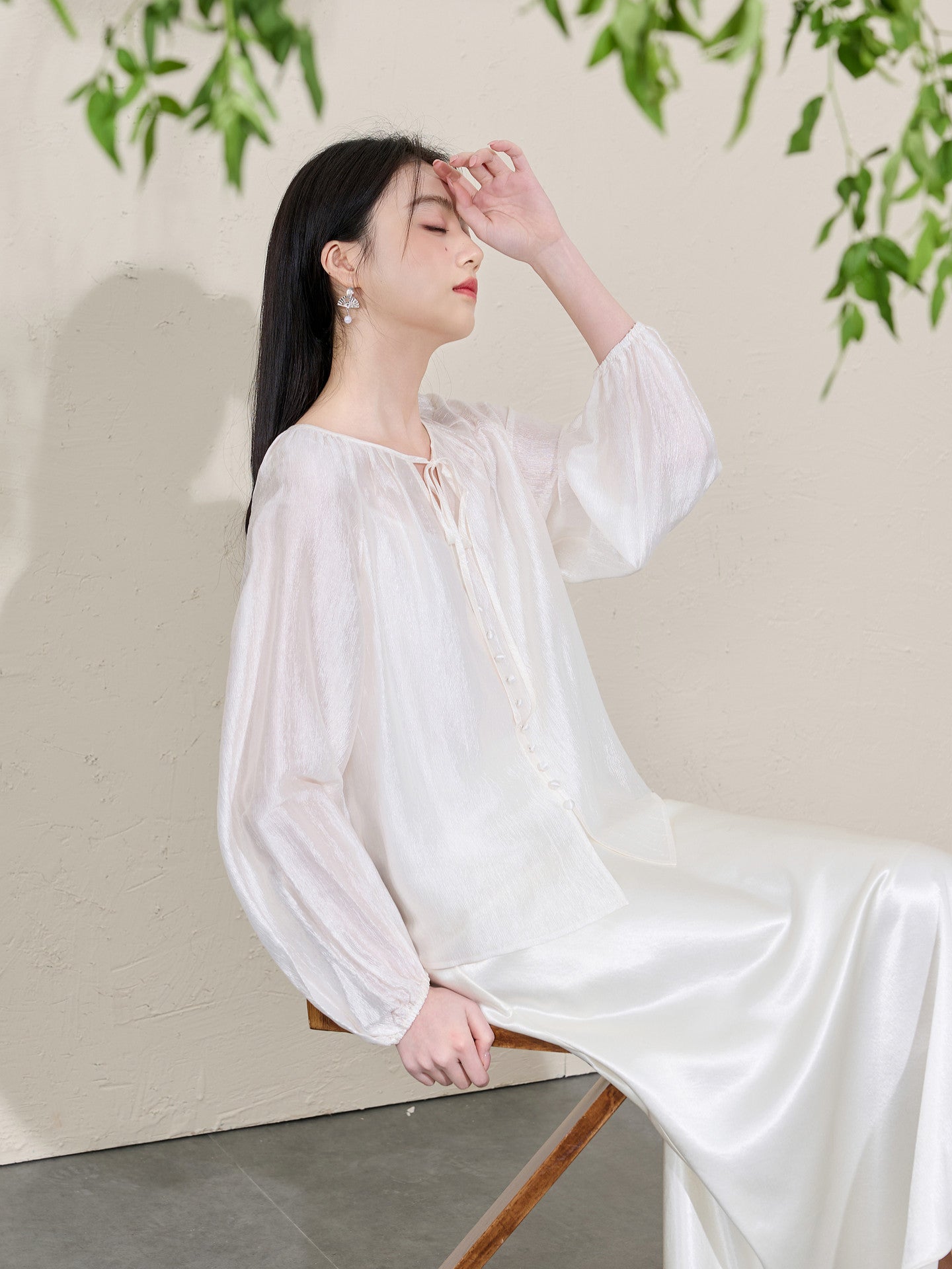 This modern Cheongsam top in a soft beige hue is perfect for casual outings or special occasions. Its loose fit and stylish tie design offer comfort while maintaining a chic silhouette. The traditional elements blend seamlessly with contemporary style, making it a versatile addition to your wardrobe. Ideal for pairing with skirts or trousers, this Qipao-inspired piece is a must-have for those who appreciate cultural heritage and modern fashion.
