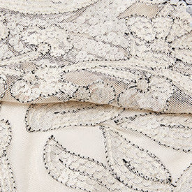 - Warm iron under cloth. Dry cleanable.