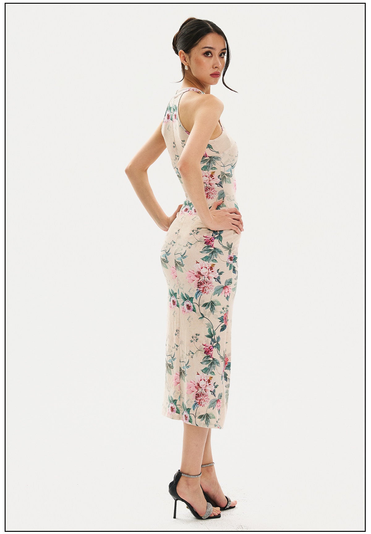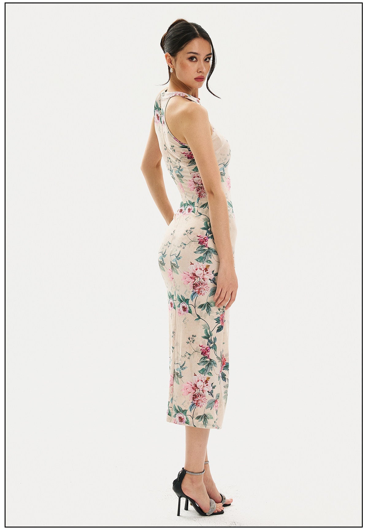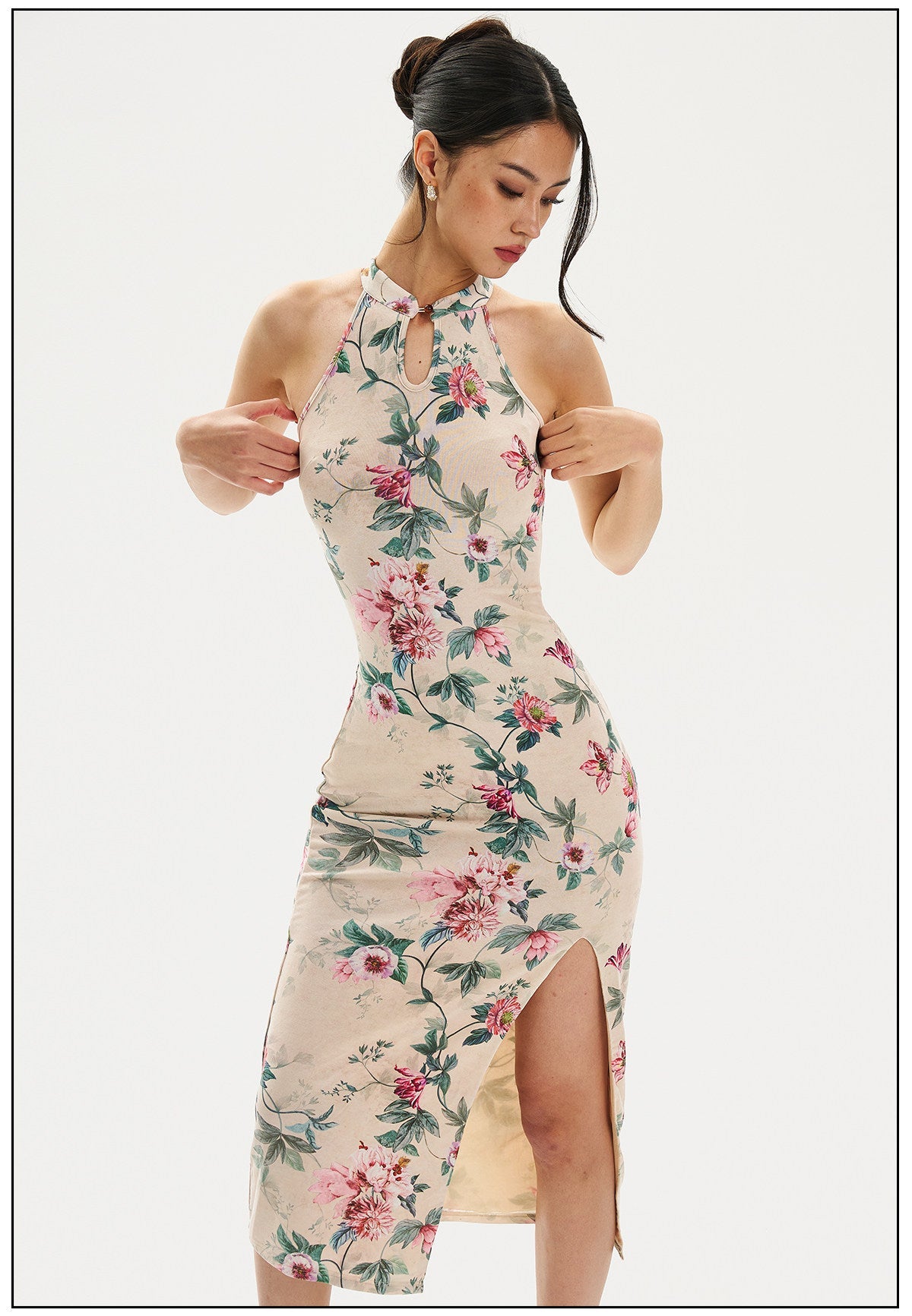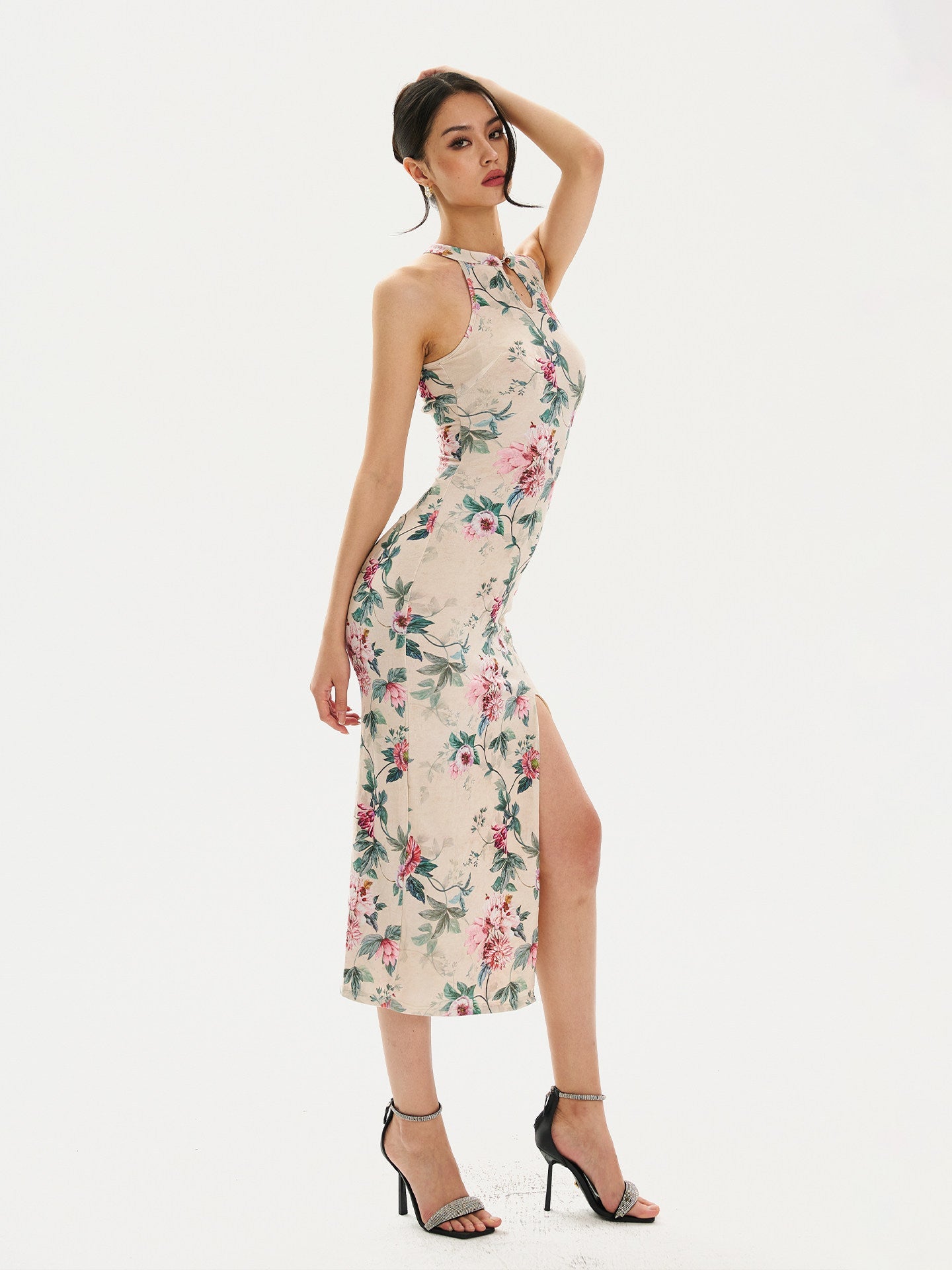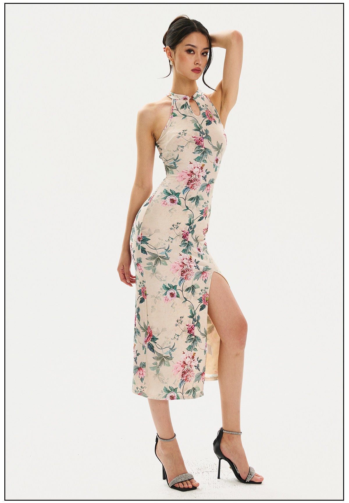 Adelaide Satiny High Slit Floral Cheongsam Qipao Dress