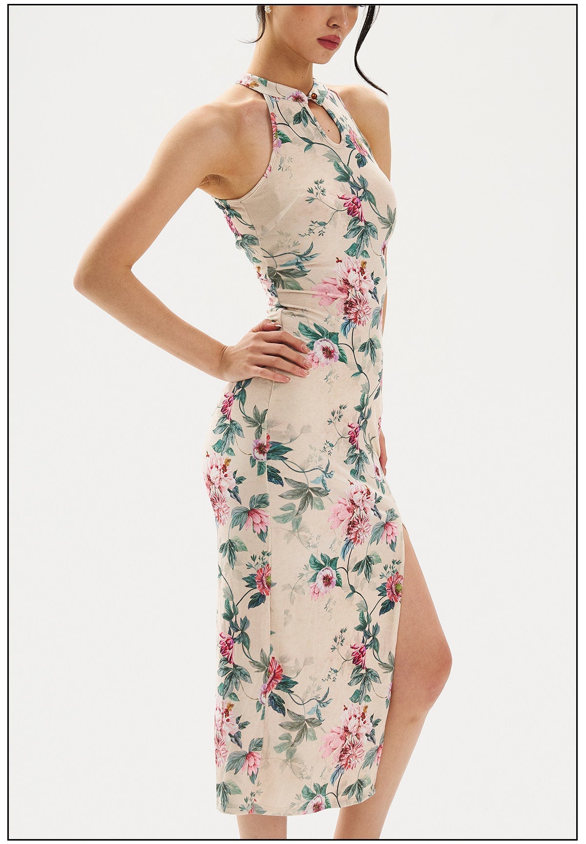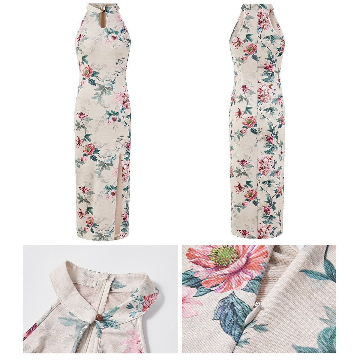 This stunning Floral Cheongsam Qipao dress features a modern design with a high slit, perfect for elegant occasions. The intricate floral patterns and traditional frog buttons add a touch of cultural heritage, making it ideal for weddings, tea ceremonies, or festive celebrations. Experience the beauty of this exquisite piece that seamlessly blends tradition with contemporary style.