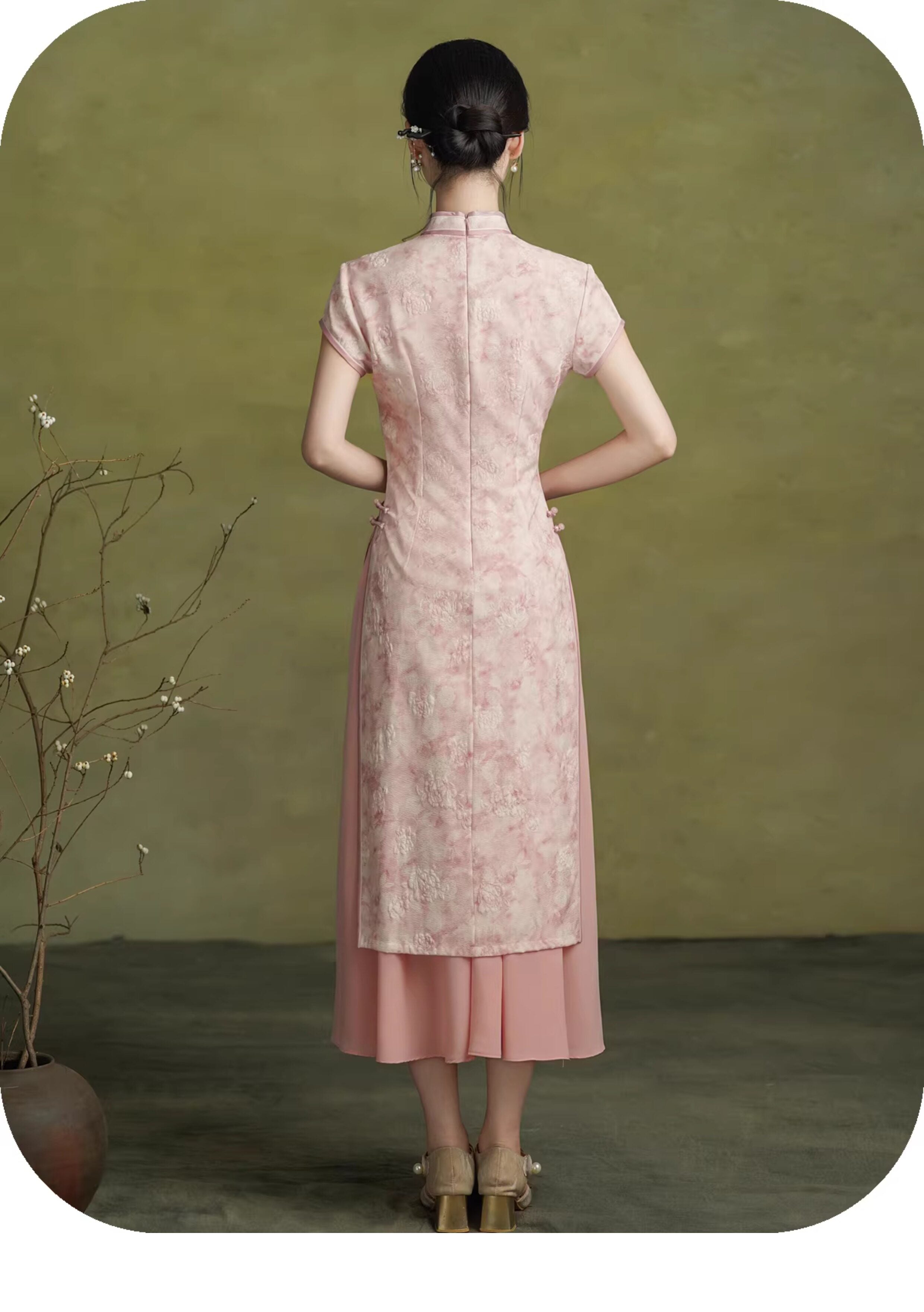 Embrace elegance with this stunning pink Cheongsam, a modern Qipao perfect for summer occasions. Featuring a stylish short-sleeve design, this improved dress showcases traditional elements while offering a contemporary silhouette. Ideal for weddings, tea ceremonies, or festive gatherings, this versatile piece beautifully blends cultural heritage with modern fashion sensibilities.