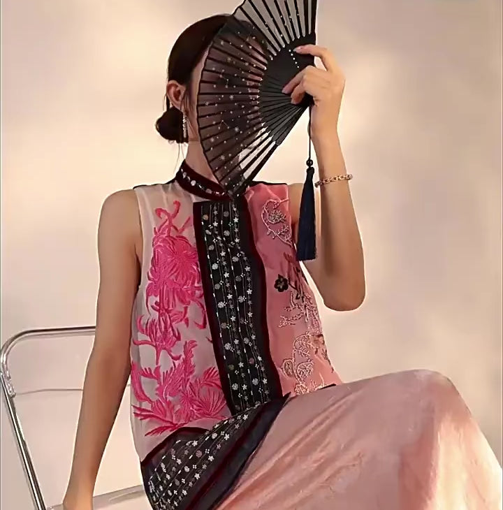Silk Izabella Bloom Ready Embroidery Qipao Cheongsam Vest Top