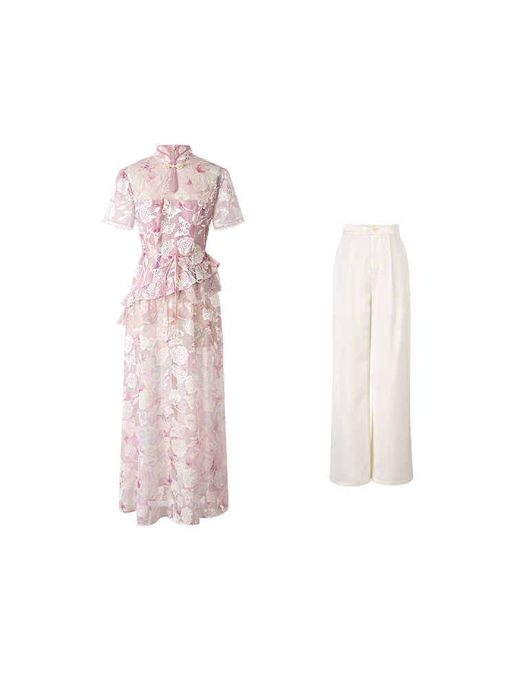 Una Moonlit Grace Qipao Cheongsam Two Piece
